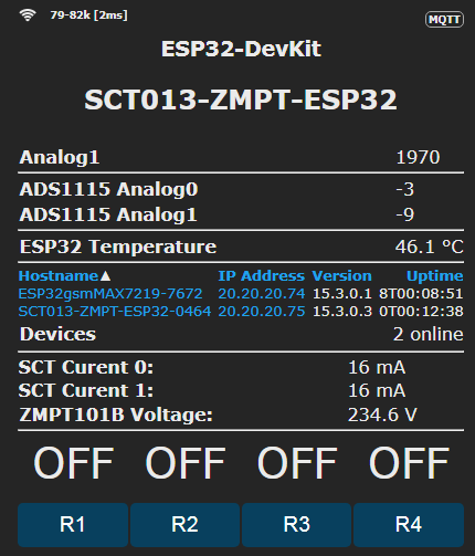 - 2 x Входа для SCT013 (Датчики тока) в Tasmota работают